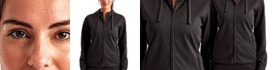 8 oz./yd²., 100% recycled polyester Wicking fabric technology Feminine fit Double-panel hood Full-zip style Front zip pockets Tear away label Recycled polyester from post-consumer plastic Spun dyed garments are dyed prior to the spinning process which means 75% less chemicals used in the process, 66% less water and 60% less CO2