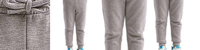 8.2 oz./yd²., 60/40 cotton, recycled polyester Heather Grey: 90/10 cotton, viscose Elasticated waistband with self-colored ties Ribbed cuffs Recycled polyester from post-consumer plastic Pair with TD85B Corresponds with adult style TD055