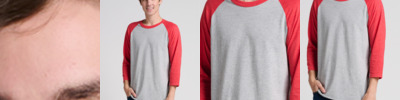 Stretch fit Crewneck binding 3/4-sleeve 1x1 micro rib Side seamed Mid-length Tear-away label 5.4-ounce, 52/48 Airlume combed and ring spun cotton/polyester, 32 singles Athletic Heather/Black: 90/10 Airlume combed and ring spun cotton/polyester