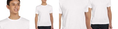 4.5 oz., 100% combed ringspun cotton jersey; Topstitched ribbed collar; Taped neck with EasyTear™ label; Double-needle hemmed sleeves and bottom; White is sewn with 100% cotton thread; Heather is 93% cotton, 7% polyester;