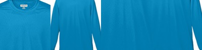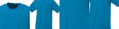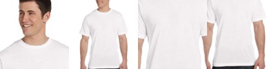 4.5 oz., 100% polyester; Moisture management jersey; Ribbed collar; Taped shoulder to shoulder with EasyTear™ label; Double-needle hemmed sleeves and bottom;