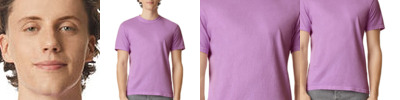 100% ringspun cotton; Preshrunk, soft-washed, garment-dyed fabric; Set-in sleeves; Double-needle stitched sleeves and bottom hem; Taped shoulder-to-shoulder; Ribbed collar with double-needle topstitched neckline;