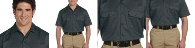 65% polyester, 35% cotton; Visa® moisture-wicking and stain-release finish; Generous fit across shoulders; Long-sleeves, extra-long tail and 20-line melamine buttons; Two chest pockets and two-button cuffs for a custom fit; Dickies logo patch at bottom of placket; Shirt colors match Dickies traditional work pants;