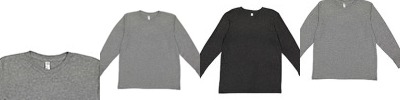 4.2 oz., 100% combed and ringspun cotton; 30 singles; Available in two-tone color options; Sideseamed; Unisex Fit; Ash 99/1, Athletic Heather 90/10, Dark Grey Heather 52/48 cotton/poly; Triblends: 50% poly/25% combed & ringspun cotton/25% rayon, 40 singles, 3.4 oz.; Neon colors: 52% combed and ringspun cotton 48% polyester, 40 singles, 3.6 oz.;