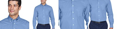 3.4 oz., 55% cotton, 45% polyester broadcloth; true non-iron performance straight from the dryer; stain release finish; fine yarn count shirting with pearlized buttons; patented pucker-free taped seams; specially fused collar, cuffs and placket; split back seam with bias cut back yoke; classic fit for professional appearance; rolled button-down collar; adjustable "Comfort Collar" gives up to an inch stretch at neck; left-chest pocket;