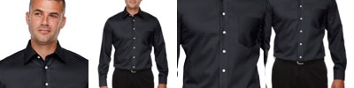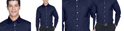 3.4 oz., 55% cotton, 45% polyester; Fine yarn count shirting; True Non-iron performance straight from the dryer; stain release finish; Classic Fit for professional appearance; Patented pucker-free taped seams; Fused collar cuffs and placket; Split back seam with bias cut back yoke; rolled button-down collar; adjustable Comfort Collar for up to an inch of stretch at neck; left-chest pocket; pearlized buttons;