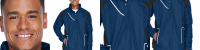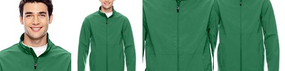 2.8 oz., abrasion-resistant 100% nylon taslan shell with polyurethane coating for enhanced wind- and water-resistance; 2.95 oz., 100% polyester dyed-to-match tricot big hole mesh lining in body; 1.7 oz., 100% polyester taffeta lining in sleeves; roll-away three-piece hood with 1¼" rain bill; Black 3/8" taping adds contrast to back and sleeves; EZEM zipper in back lining for easy decoration access; center front/lower pockets with molded plastic zipper with garage;