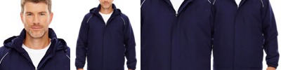 INSULATION: 100 gsm in body and 60 gsm in sleeves; 100% polyester microfibre twill, 3.4 oz./yd2/115 gsm; LINING: 100% polyester brushed tricot in body; storm flap with snap closure at bottom; brushed tricot-lined collar and chin guard; centre front autolock zipper with reflective toggle; roll-away hood; elasticized cuffs; lower brushed tricot-lined concealed zippered pockets ; thermal retention shockcord at hood and drop back hem; audio port access through inside left pocket; reflective piping at shoulder yoke and centre back yoke;
