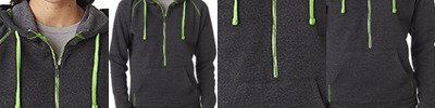 8.5 oz. 60% cotton, 40% polyester fleece; Triple-needle contrast accent stitching; Contrast jersey hood lining and drawcord; Raglan sleeves; Front pouch pocket;