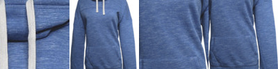 7.25 oz. 60% cotton, 40% polyester melange fleece; Scuba hood; Contrast drawcords; Front pouch pocket; Rib waist & cuffs; Two contrast stripes on each sleeve;