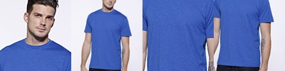 3.5 oz./yd2 / 130 gsm, 100% polyester sonic heather interlock; Moisture-wicking and UV 15-39 protection; Team fit; Cationic dyes to ensure superior brightness and excellent color fastness; Transitioning from heat-seal label to tear away label. Inventory may be mixed;