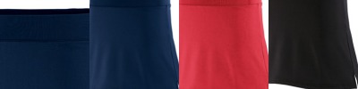 90% polyester/10% spandex knit ; Odor resistant; Wicks moisture away from the body; Girls fit; Pad print label ; Low-rise; Covered elastic waistband;