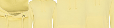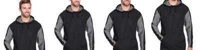 7 oz.; 100% Spun Polyester fleece fabric; Self-fabric cuffs; Contrast hood lining; Side-entry pockets; Underarm an side gusset panels;