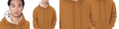 17 oz. ; 80% cotton, 20% polyester ; 100% cotton waffle thermal lining; High-quality, heavyweight pre-shrunk fabric; Contrast lining; Matching drawstrings on double-lined hood; Spandex in cuff and band with front muff pocket;