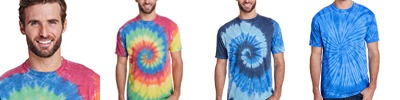 50% cotton, 50% polyester ring-spun burnout tie-dye; No two are exactly alike; Wash seperatley ;
