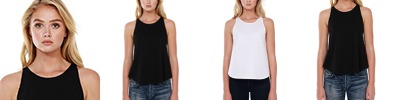 3.5 oz., 100% combed and ring-spun liquid cotton; 40 singles; Optimal stretch and recovery; Fashion fit; Side seams; Perfect drape; Slim shoulder straps; Gradual flare to scalloped hem; Tear-away label; Made in a W.R.A.P. certified factory;