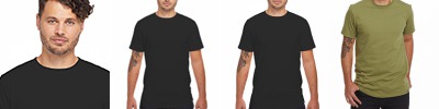 5.5 oz., 100% organic cotton fiber; Made in USA; Shoulder seam clean-finished with self-fabric tape; Side-seam construction; Double-needle coverstitched seams; Tear away label; External woven clamp label;