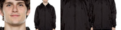 100% nylon; Water resistant; Pouch pocket with horizontal zip mesh-lined pocket; Coil zipper with metal pull; Raglan sleeves with elastic cuff openings; Drawstring hem with cord lock;