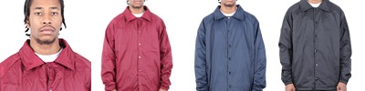 3 oz., water-resistant 100% nylon shell; 1.8 oz., 100% polyester lining; 17.2 oz. 2x1 100% polyester rib; Raglan sleeve for maximum mobility; Dyed-to-match buttons; 2 striped rib on neck, cuff, and waist;