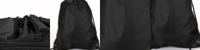 210 denier nylon; Black drawstring; 14" x 16"; Non-branded label/tag ; Suggested Imprint Size: 10"W x 12"H;