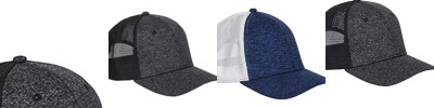 97% polyester, 3% spandex heather jersey kniit front and visor; 100% polyester soft mesh back; NO Sweat™ moisture wicking sweatband; Structured, mid-profile;