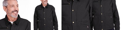 8.5 oz., 59% cotton/39% polyester/2% spandex DRI FLEX™ canvas with a water-resistant DWR finish; Brushed tricot inside upper body panel; Quilted nylon inside lower body panel with 3 oz. polyfill; Right-chest zippered pocket and secure hand pockets; Heavy-duty 2-way YKK metal zipper; Three-piece hood with scuba collar and inside, adjustable-toggle drawcord; Flex Action™ back, underarm gussets, and articulated elbows; Drop tail hem, storm cuffs; Reinforced stitching on high-stress seams; Relaxed fit;