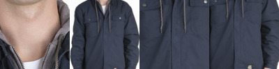 - Two-panel hood and double-needle topstitch on all seams