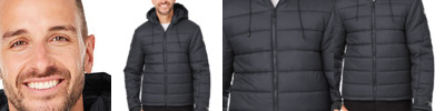 - Adjustable zip-off hood, exposed molded zipper, internal draft flap