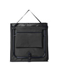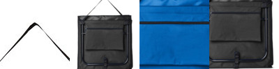 Folds for easy carrying with handle, adjustable carry strap and hook and loop type fastener