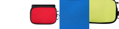 - Case features zipper closure, front open pocket, and polyester web handles (measuring approx 6.5"l x 1"w)