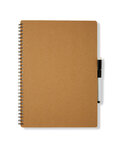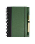 • Cover is made of 80% post consumer recycled materials, metal spiral binding is made of 90% post consumer recycled materials, pen barrel is made of 100% post consumer recycled paper