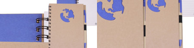 • Recycled hard cover wire-bound notebook with die cut global (earth-shape) cover design.