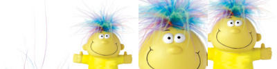 • Stress reliever with feather"hair"