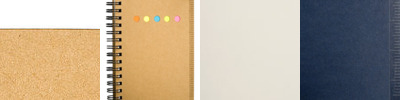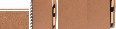 Recycled Cardboard cover made from 65% recycled materials (part is pre-consumer and part is post-consumer); 50 ruled recycled sheets are made from 20% pre-consumer recycled material