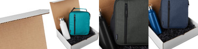 Kraft gift box packed with PL-4205 Vacuum Insulated Tumbler and LB504 Auston Collection heathered cooler bag