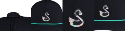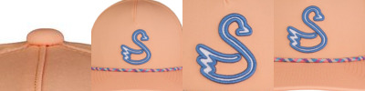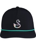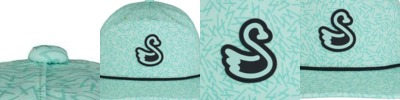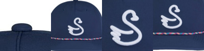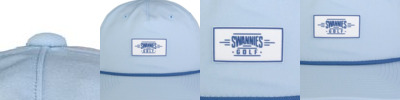 88% polyester, 12% spandex waterproofed; reload; 5-panel construction; Slightly curved bill with rope; Adjustable snapback closure; This unique Swannies design includes a Swannies rubberized logo patch on the front of the hat, not removable;