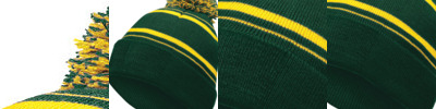 • Two layers of knit featuring a two-color pom accent