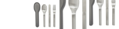 • a nesting knife, spoon and fork set that feels great to hold and conveniently nests into a protective case for easy carrying