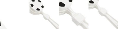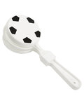 Soccer-shaped plastic clappers featuring sport-themed stock art