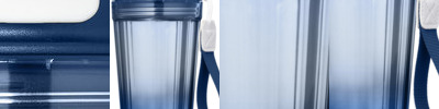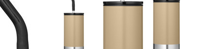 Soft touch colored body with grey rim; screw-on lid and straw match body color