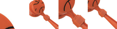 Basketball-shaped plastic clappers featuring sport-themed stock art