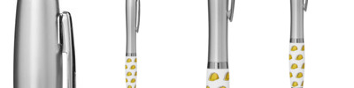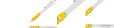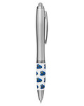 - Retractable curvy barrel ballpoint pen with Jetline's exclusive stock art grip featuring our Emoticon happy face