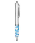 - Retractable curvy Plastic barrel ballpoint pen with cloud or technology theme stock art comfort grip