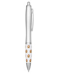- Retractable curvy plastic barrel ballpoint pen with stock art grip featuring a Church Emoticon