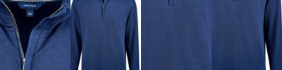 - Quarter-zip front closure, Nautica neck tape