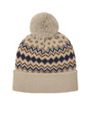 100% acrylic Double layered for warmth Eye-catching knit pattern Five darts at crown for shaping Adjustable 3-inch cuff