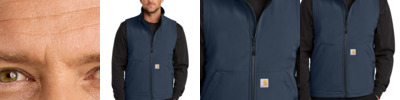 The work doesn't stop for rain showers. These durable soft shells are equipped to stand up to wind and rain so you can get the job done. 10-ounce, 87/13 nylon/elastane 100% polyester lining Rain Defender ® durable water repellent (DWR) Wind Fighter ® technology tames wind Rugged Flex ® stretch technology for ease of movement Mock neck collar Reverse coil center front zipper with chin protector Interior pocket with hook and loop closure Two lower front zippered pockets Adjustable drop tail hem for added coverage Carhartt label sewn on left pocket Relaxed fit