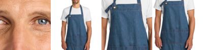 A soft and durable apron for makers, baristas, retail staff and more. 8-ounce, 100% cotton garment-washed denim Self-fabric neck strap with antique brass grommet pass through detail Large divided front pocket Duck Brown woven herringbone tape waist ties 13'w across chest x 32'l **