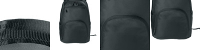 400D x 400D recycled RPET ballistic poly PU/600D ballistic poly 200D recycled RPET poly debossed lining Large main compartment with interior mesh pockets Dedicated laptop compartment Interior mesh gear pockets and headphone storage Interior office Vertical zippered front pocket Zippered front bottom pocket Expandable side pockets Luggage trolley pass through on back Padded top and side grab handles Padded air mesh shoulder straps with webbing and stash pocket Raised O icon heat transfer on front Laptop sleeve dimensions: 18.5'h x 12'w; fits most 18' laptops Dimensions: 19'h x 12'w x 8'd Capacity: 1,220.5 cu. in./20 L Weight: 2.6 lbs./1.2 kg Note: Bags not intended for use by children 12 and under.