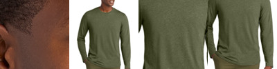 4.7-ounce, 100% cotton jersey 60/40 CVC cotton/polyester (Heathers, Neon Pink, Safety Green, Safety Orange) 90/10 CVC cotton/polyester (Athletic Heather) Seamless 1x1 rib knit collar with clean neckline Shoulder to shoulder taping 1x1 rib knit cuffs Classic fit Tear-away label